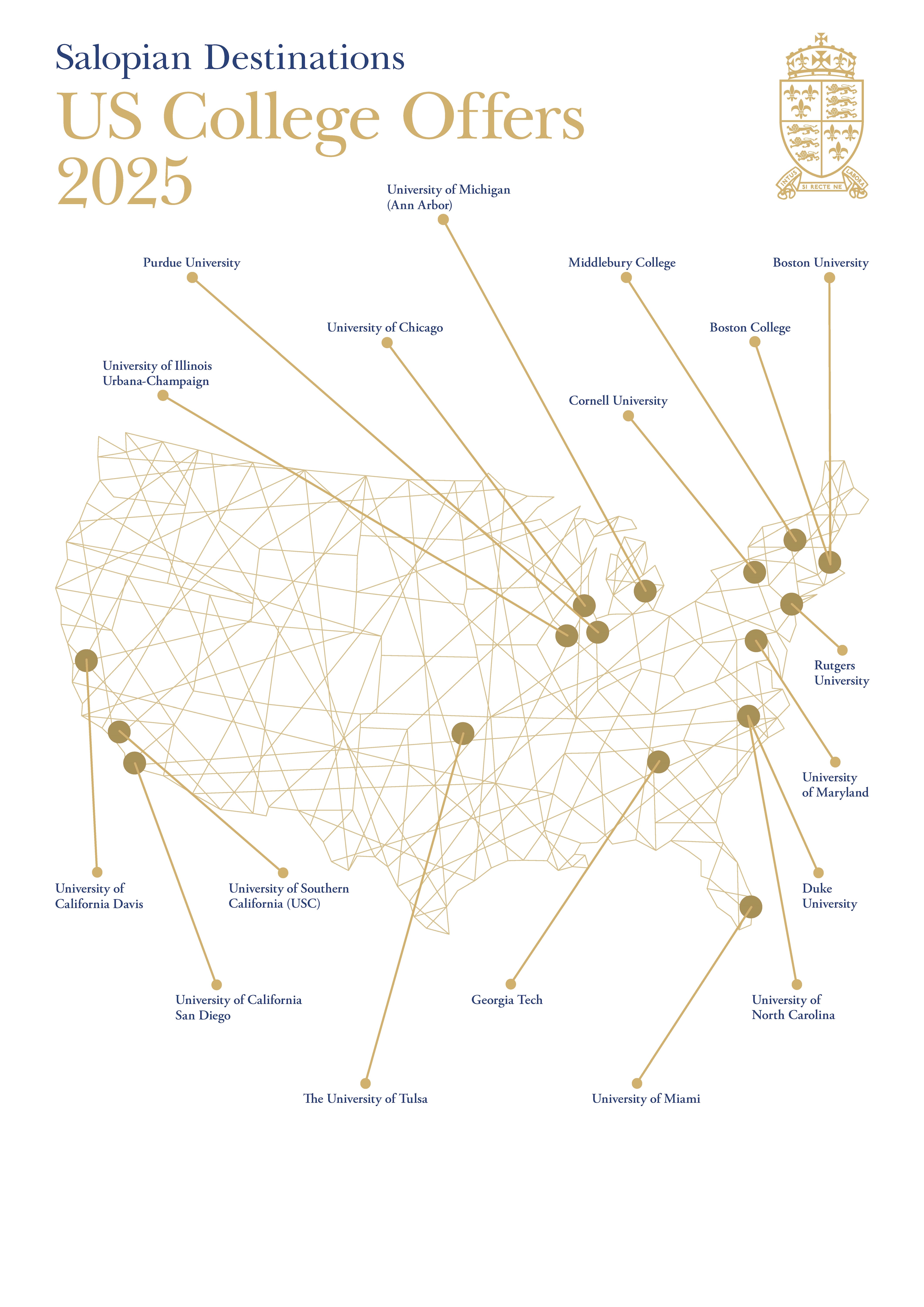 An increasing number of Salopians are choosing to study in top North American universities and beyond, with 10 students currently in Ivy League and Ivy Plus universities. Many secure highly competitive scholarships, including: