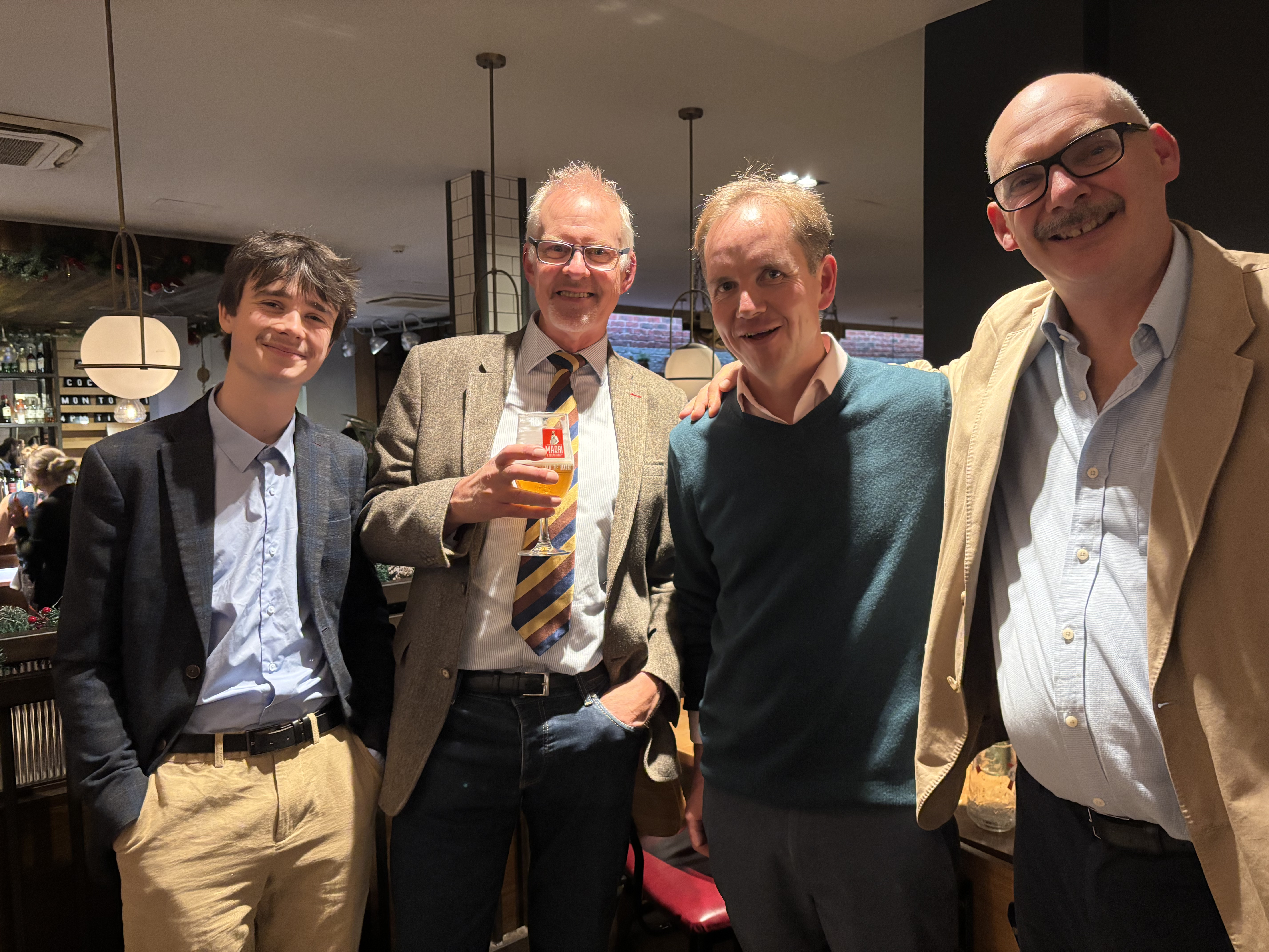 The festive season is off to an excellent start in the Old Salopian Community. First the annual Birmingham Drinks were held at Saint Pauls House Hotel in St Paul’s Square in the Jewellery Quarter. There are strong historic associations with the area as the St Paul’s Club, which has relocated, was the scene of many a Birmingham Dinner in the past. Whilst that was a formal meal in a gentlemen’s club the modern Birmingham Drinks is a multi-generational event in a buzzing bar and restaurant. Old Salopians studying in the city mingled with those who are just starting out in their careers and others who are retired. It was good to welcome the President Tim Lamb, who travelled from St Albans for the event, to his first Birmingham Drinks.