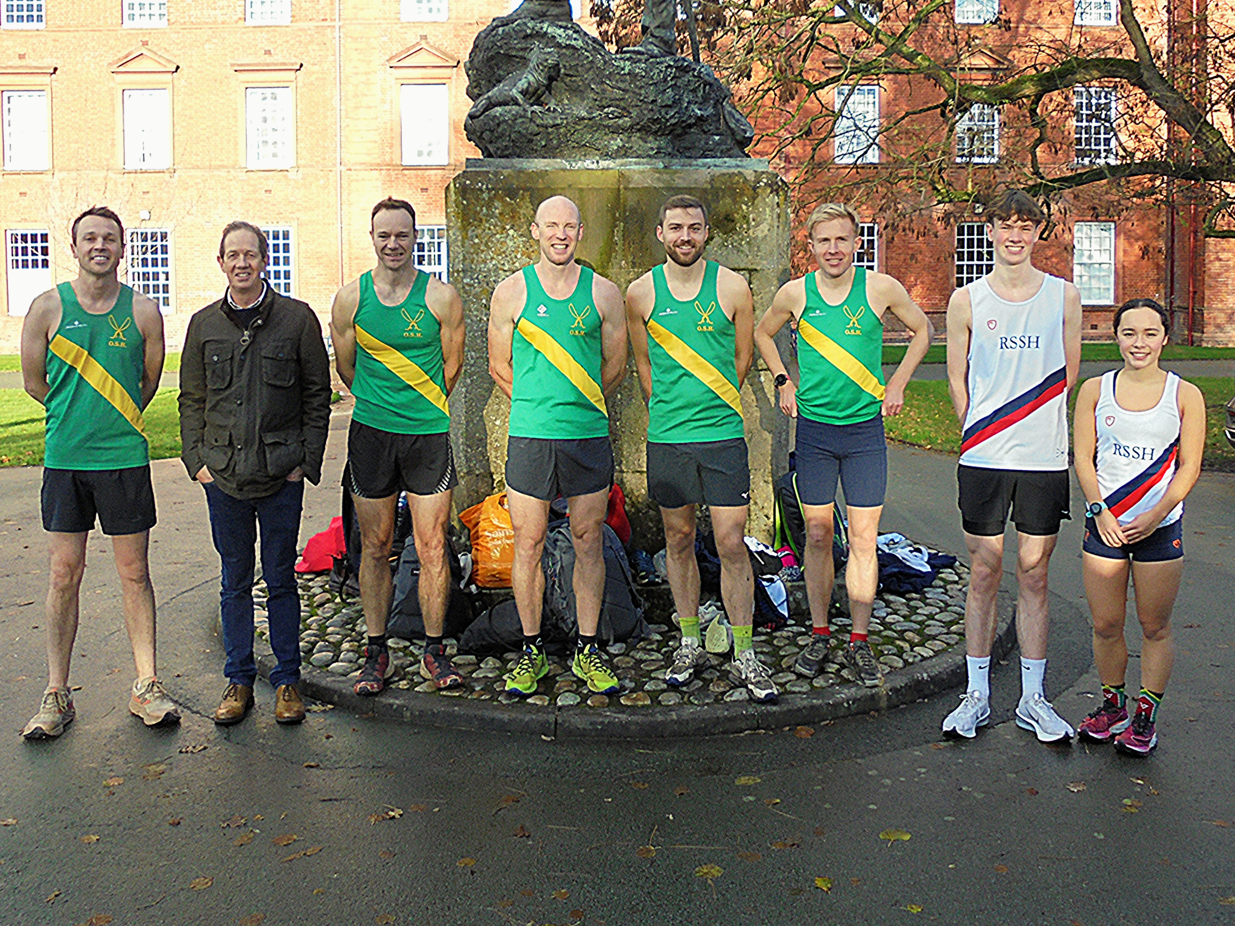 The first photo was of 17 of The OSH Team that were running on this day, showing from the left, Adam Booth (PH.1995-2000), Sam Griffiths (Staff), Ian Haworth (Staff), Dom Weilds (Rb.&SH.’20-25, Senior Whip), Hamish Griffiths (PH.& R.’19-24), Henry Exham (R.’97-02 & Staff), Giles Holliday (I.’19-24), Tim Strebel (I.’19-24), Oli Mott (Rb.’98-03), Cal Winwood (I.’06-11), Ed Mallett (S.’08-13 & OSH Captain), George Mallett (S.’07-12), Rowan Reid (Rt.’20-25), Zac Wasteney (Rb.&SH.’21-24), Archie Price Siddiqui (Rb.&SH.’20-24), Jonny Price (I.’17-22), Ed Charlton-Weedy (O.’99-04).