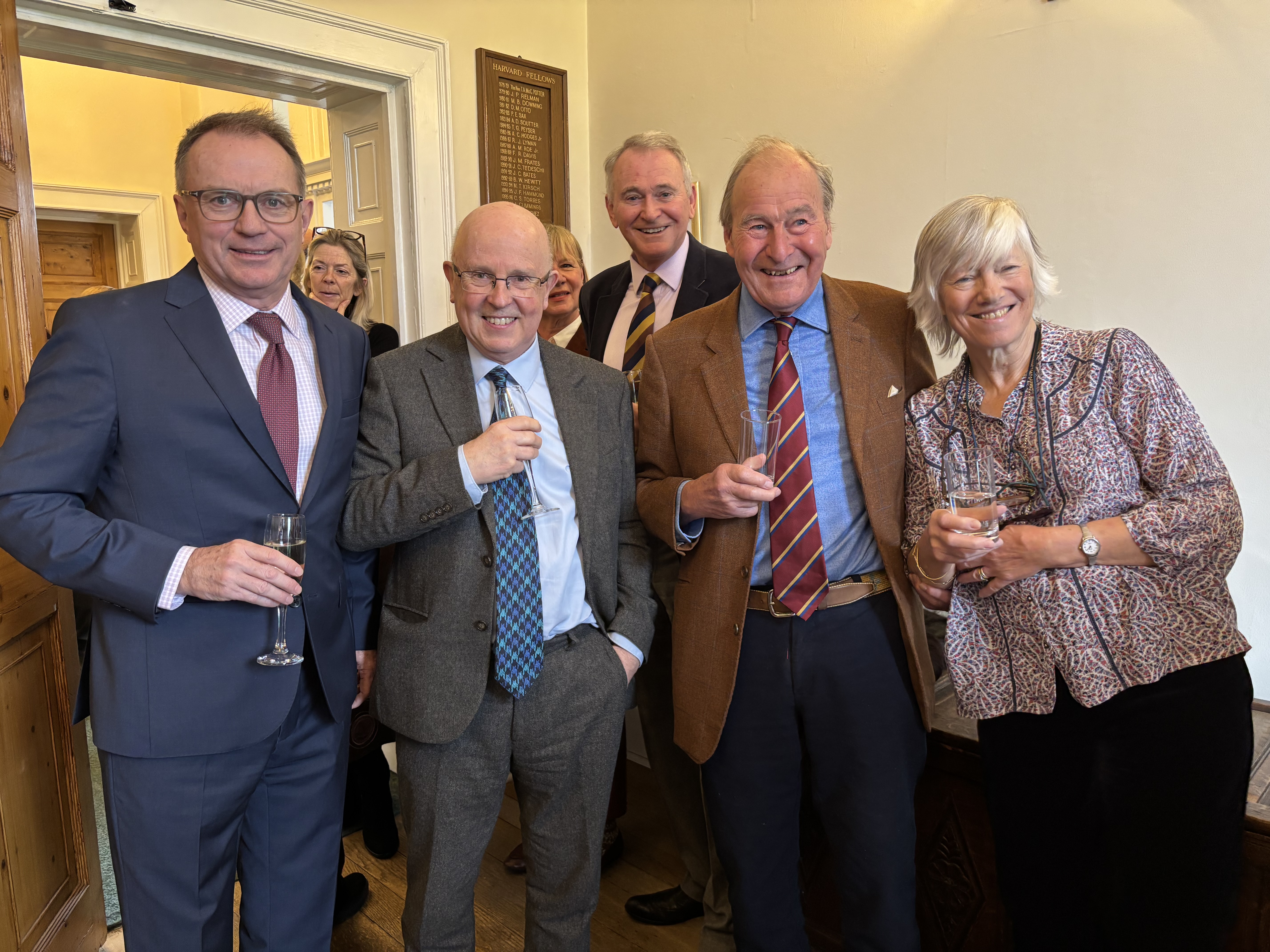 (Stephen Holroyd - former Senior Deputy Headmaster, Richard Hudson - editor of the Salopian Magazine, Tony Barker, Nicko Williams - past President, Jackie Williams)