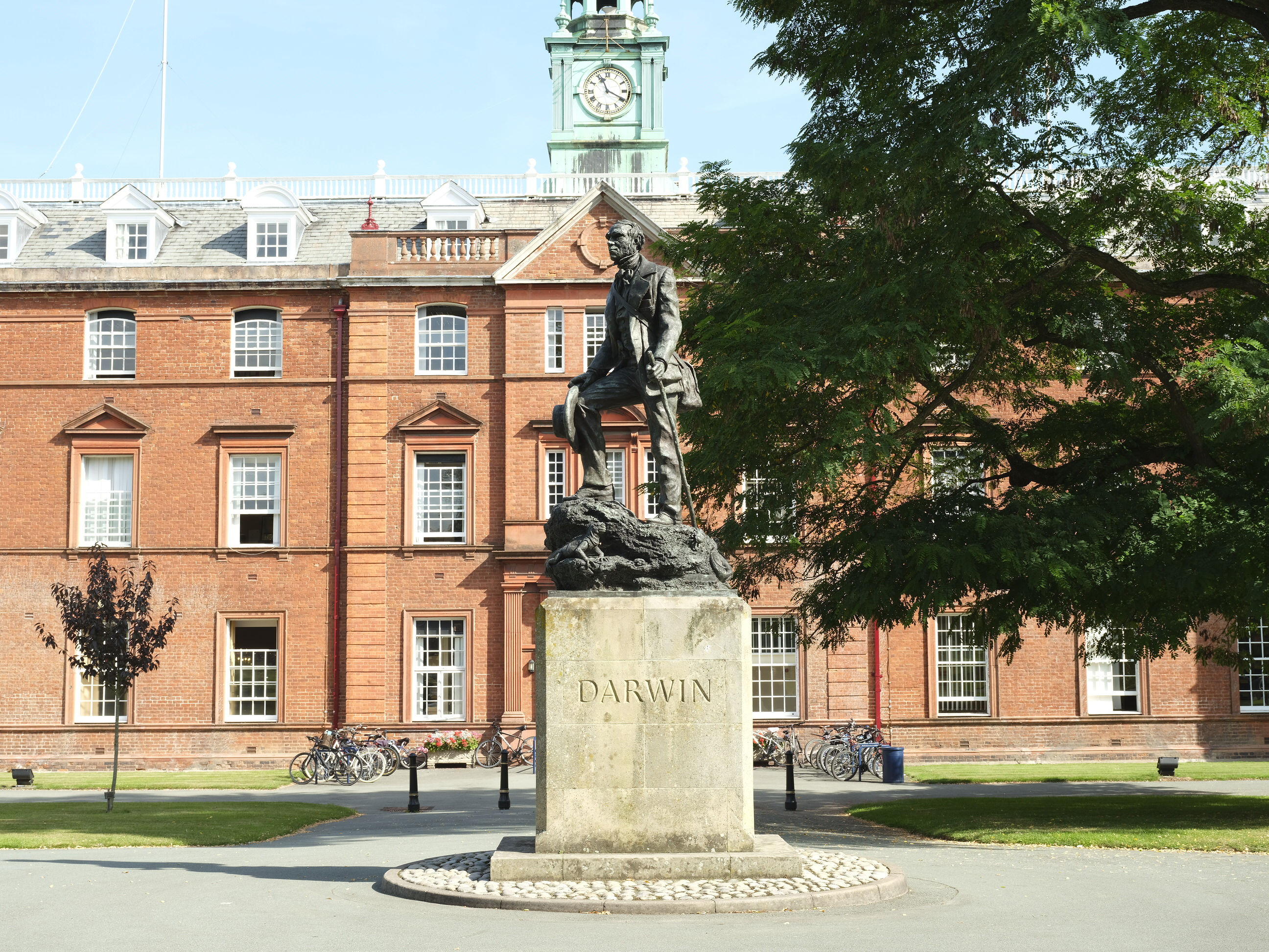 Shropshire sculptor Jemma Pearson was commissioned by the School to make a sculpture of Charles Darwin to commemorate the millennium. It was unveiled by Sir David Attenborough on 9th September 2000 and depicts Darwin as a young man during his explorations on The Beagle, carrying geological hammers, a notebook, flask, stick, and a satchel for carrying specimens.